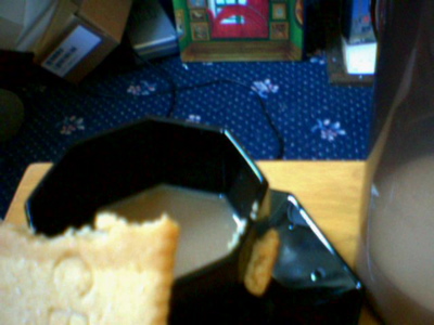 Ack! Biscuit down the side of the cup! And whats this...