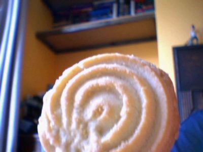 swirly pattern. Chunky, crumbly, bit bland without a dunk,